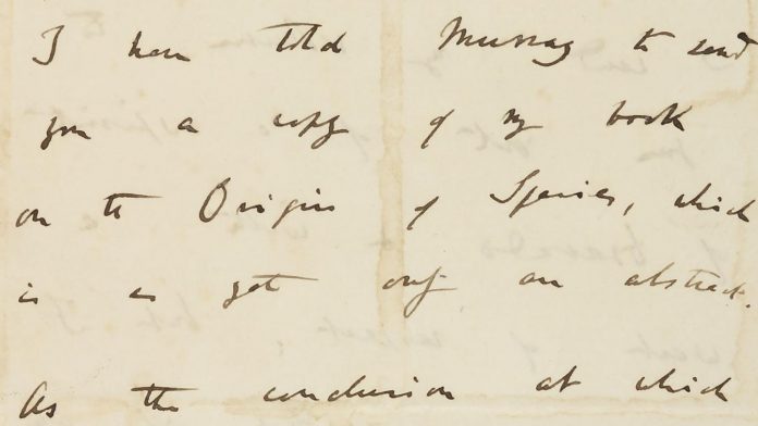 Photo: Darwin’s handwritten letter to his former geology professor at Cambridge where he first mentioned his radical new book, On the Origin of Species