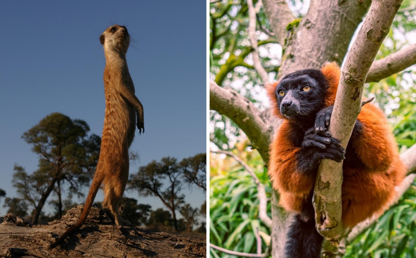 Credit Image: Andy Radford [meerkat photograph]; Michalis Mantelos [red-ruffed lemur photograph]