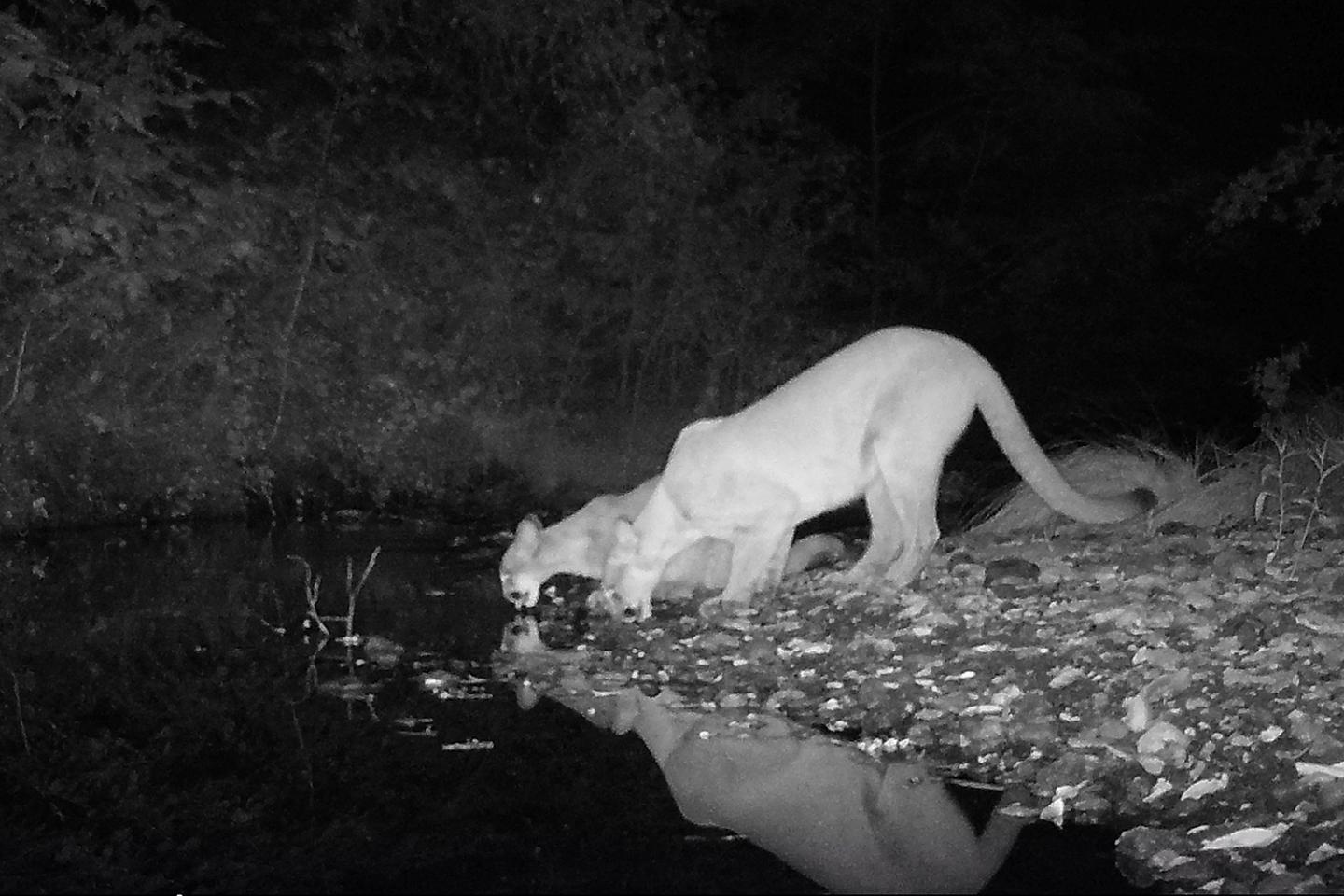 Photo: A night vision camera trap captured this image of mountain lions drinking from a stream at Stanford’s Jasper Ridge Biological Preserve.