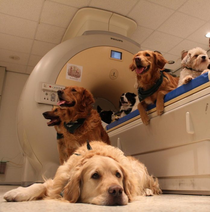 Photo: Researchers at the department of Ethology at Eötvös Loránd University trained the dogs so they are capable of scanning the brains of awake, unrestrained dogs….