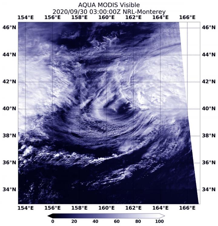 NASA imagery reveals Kujira transitioning into an extratropical cyclone