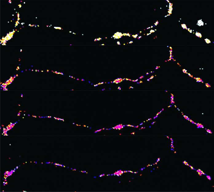 The team studied synapses that use the neurotransmitter glutamate to communicate. Communication happens when a packet of glutamate is released from presynaptic boutons which are tiny protrusions that stick out, like beads on a string, of long, wiry parts of neurons called axons. Previously, Dr. Sheng’s team showed that synaptic communication is an energy-demanding process and that mitochondria traveling along axons can control signals sent by boutons. Boutons that had mitochondria sent stronger and more consistent signals than those that were missing powerplants. The difference was due to higher energy levels produced by the mitochondria in the form of ATP.