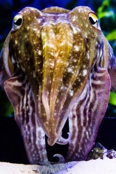 Cuttlefish, squid and octopus are a group of marine mollusks called coleoid cephalopods that once included ammonites, today only known as spiral fossils of the Cretaceous era. Modern coleoid cephalopods lost their external shells about 150 million years ago and took up an increasingly active predatory lifestyle. This development was accompanied by a massive increase in the size of their brains: modern cuttlefish and octopus have the largest brains (relative to body size) among invertebrates with a size comparable to that of reptiles and some mammals. They use these large brains to perform a range of intelligent behaviors, including the singular ability to change their skin pattern to camouflage, or hide, in their surroundings.