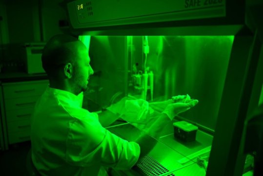 Bioengineering, the construction of biological systems, is a major field of research of the Freiburg Signalling Research Clusters of Excellence BIOSS and CIBSS. In the current T cell project, the researchers constructed a hybrid system in which components from humans, plants, bacteria and jellyfish are combined in order to equip the system with the desired properties. Through this feat of engineering, it is possible to precisely control the binding duration of the T cell receptor and a synthetic ligand — in this case a photoprotein from plants — using red light as a remote control. This use of photosensitive proteins as molecular switches is known as optogenetics. Using the OptoRobot, an optogenetic high-throughput platform, scientists have performed experiments on a large number of samples simultaneously. Thus, they have obtained accurate results and drawn meaningful conclusions for the study.