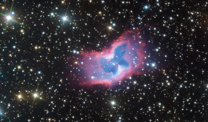 The space butterfly is located between 3000 and 6500 light-years away, in the Southern constellation of Vela – otherwise known as The Sails. It has two central stars, which is what gives it its striking, near-symmetrical shape.