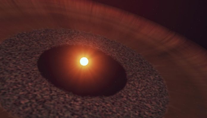 Grant Kennedy, Royal Society University Research Fellow at the University of Warwick, who led the modelling work on the study, came up with a solution to the puzzle. “We found a simple way to explain it: by modelling a gas ring, but giving the gas an extra kick outward,” he said. “Other models have been used to explain young discs with similar mechanisms, but this disc is more like a debris disc where we haven’t witnessed winds before. Our model showed the gas is entirely consistent with a scenario in which it’s being launched out of the system at around 22 kilometres per second, which is much higher than any stable orbital speed.”
