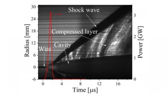 “Surprisingly, and this is the exciting part, the results of this simplified model fit excellently the experimentally obtained results,” said Alexander Rososhek, an author of the paper. The experiment showed that the exploding wire that generates the shock wave expands with subsonic velocity.