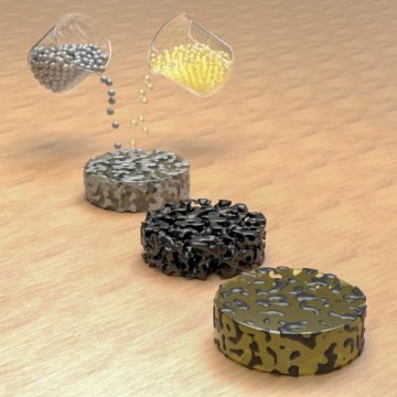 The new scheme makes much stronger scaffolds from polyacrylonitrile (PAN), a powdered polymer resin they use as a source of carbon, mixed with nickel powder. In the four-step process, they cold-press the materials to make them dense, heat them in a furnace to turn the PAN into graphene, chemically treat the resulting material to remove the nickel and use a vacuum to pull the epoxy into the now-porous material.