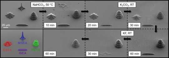 3D printing by direct laser writing enables production of micro-meter-sized structures for many applications, from biomedicine to microelectronics to optical metamaterials. Researchers of Karlsruhe Institute of Technology (KIT) have now developed 3D inks that can be erased selectively. This allows specific degradation and reassembly of highly precise structures on the micrometer and nanometer scales. The new photoresists are presented in the journal Nature Communications.