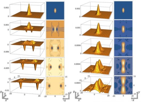 “Our probe is letting go of that extra bump of density and watching what it does,” he said. “If the atoms in the 1D guides are not interacting, then the bump will just spread out between the wires. But, if there was initial fractionalization due to correlated effects in the wires, what we can confidently calculate is that the density will do something completely different. It will go the other direction, flying down the wires.”
