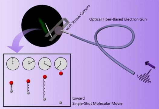 So they devised a low-energy (1-2 kilovolt) time-resolved electron diffraction concept of using fiber optics for miniaturization and the ability to stretch the electron pulse, then apply streak camera technology to potentially obtain subpicosecond temporal resolution — a difficult feat within the low-electron energy regime.